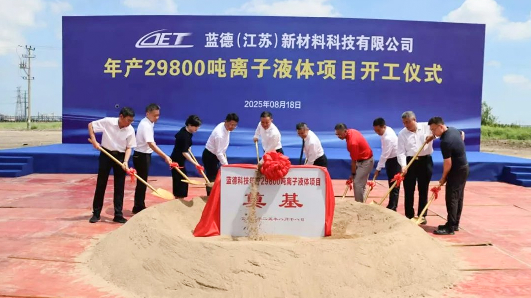 Проект Lande New Materials Ionic Liquid занимает площадь около 53 333 м2, с запланированным годовым объемом производства 29 800 тонн ионных жидкостей, а также 150 тонн хлорида лития и 100 тонн бромида лития в качестве побочных продуктов. После завершения он станет крупнейшей базой по производству ионных жидкостей в Китае. Этот проект знаменует собой ключевое стратегическое развертывание компании Lande New Materials Technology Co., Ltd. в порту Янкоу. Председатель Жэнь Сюхуа заявил, что Ланде будет по-прежнему привержен продвижению перехода ионных жидкостей из лаборатории к производству в промышленных масштабах.